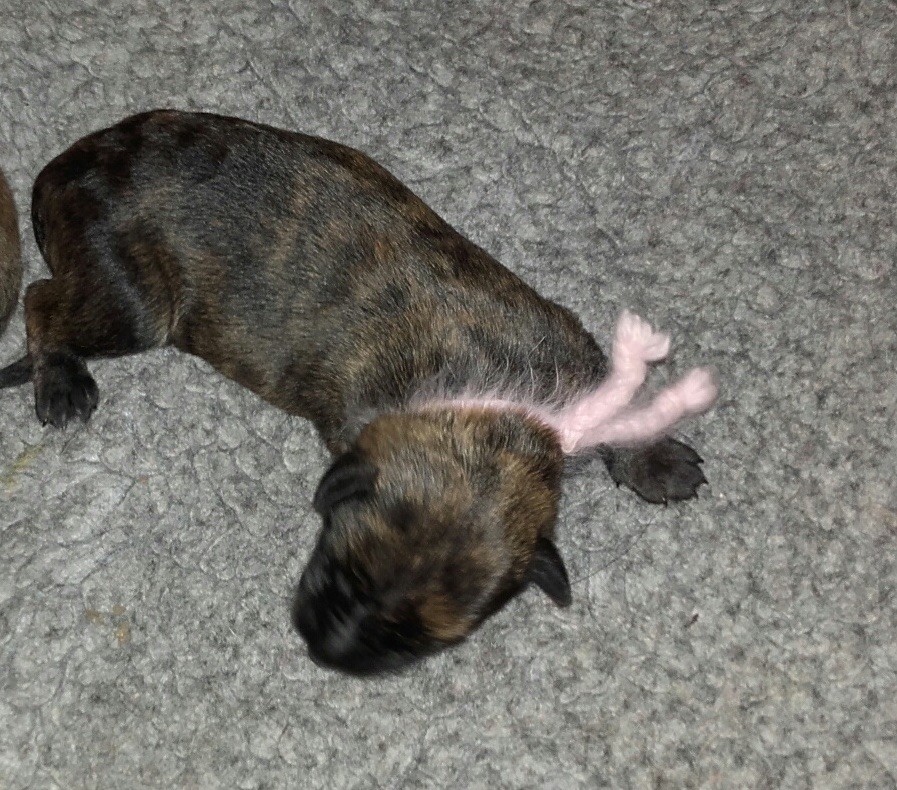 Petit Male bringé foncé, collier noir/rouge